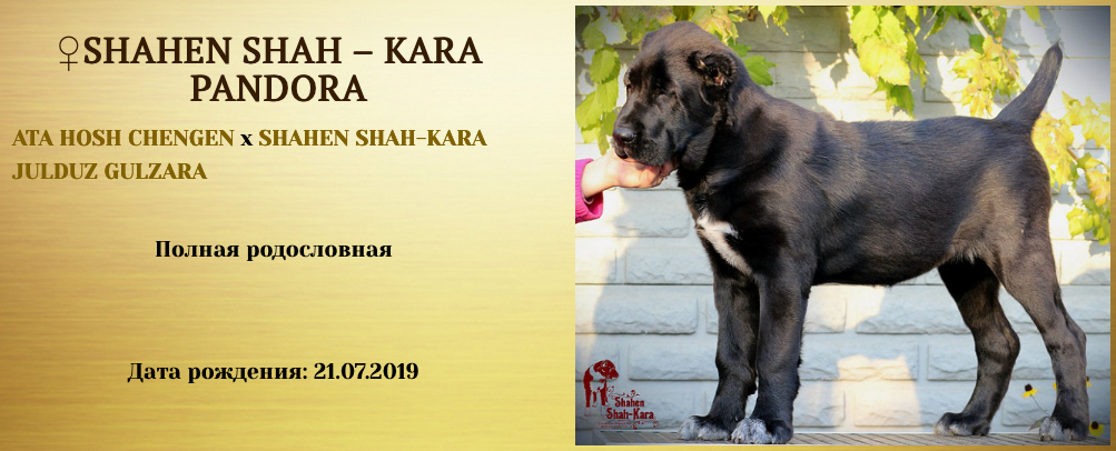 Дата рождения: 15.11.2019Помет: литера "R"Отец: BAHMAL IAR RUSLANМать: RAMENSKIY GRIZLI BAGIRAРождено: 4 кобеля и 2 суки